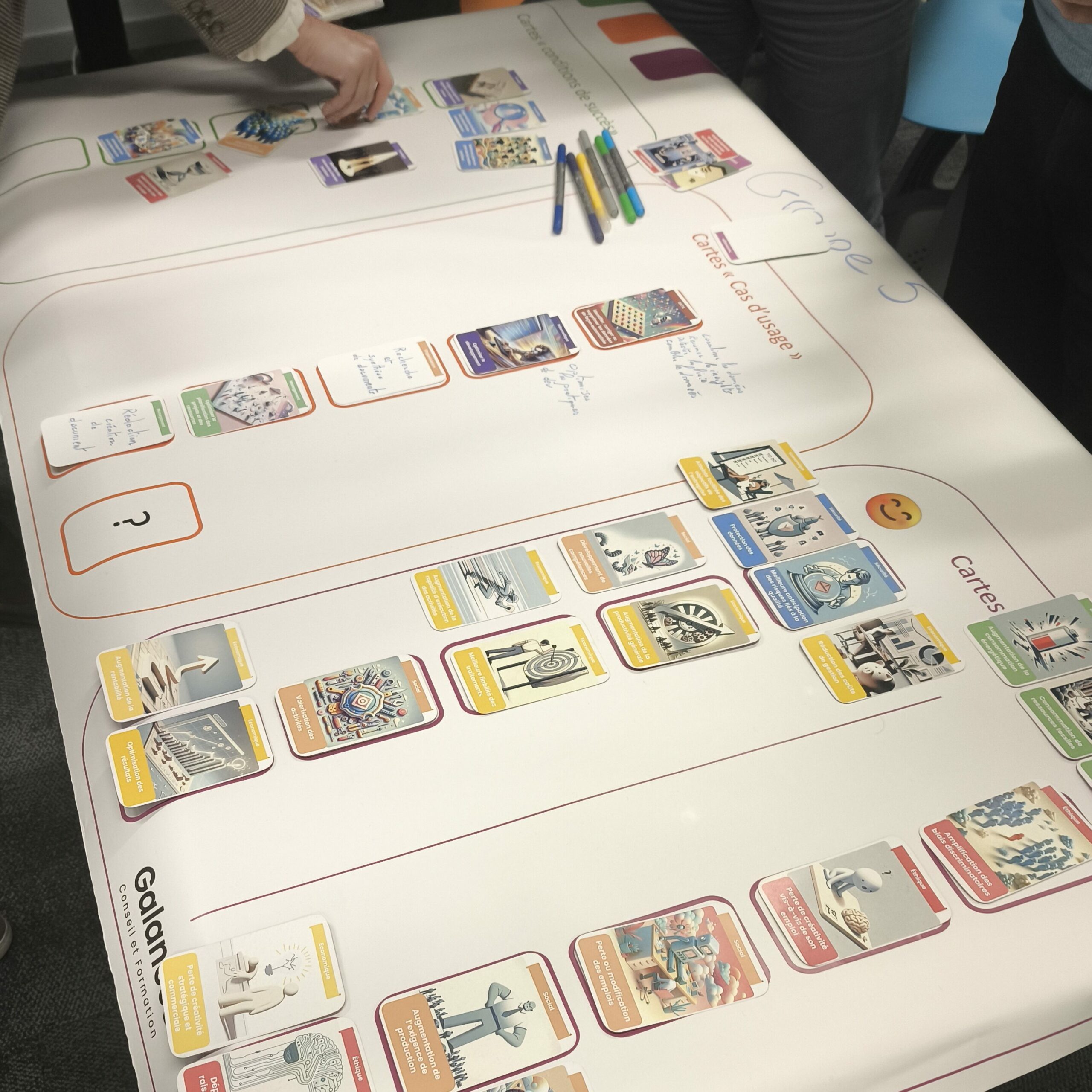 La Fresque de l’IA® est un atelier collaboratif convivial créé par Galances Conseil & Formation et qui vise à mieux comprendre les impacts de l’intelligence artificielle au sein de son entreprise.